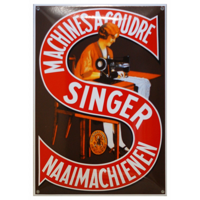 3. Singer Naaimachienen Emaille Bord 40x60cm gebold - Emaille Kopie