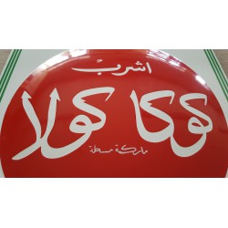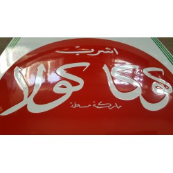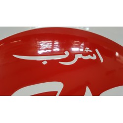 Coca Cola Button Emaille Bord Arabic 45x45cm gebogen randen - Emaille Kopie